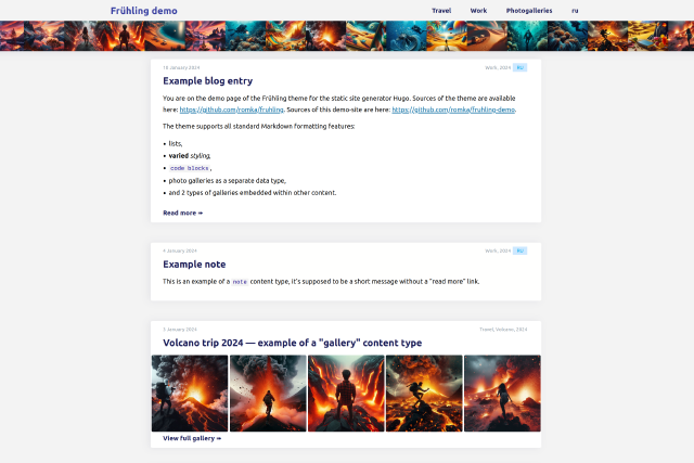 Theme is designed for blogs with long posts and lots of photos, and photo galleries that can be embedded in posts.